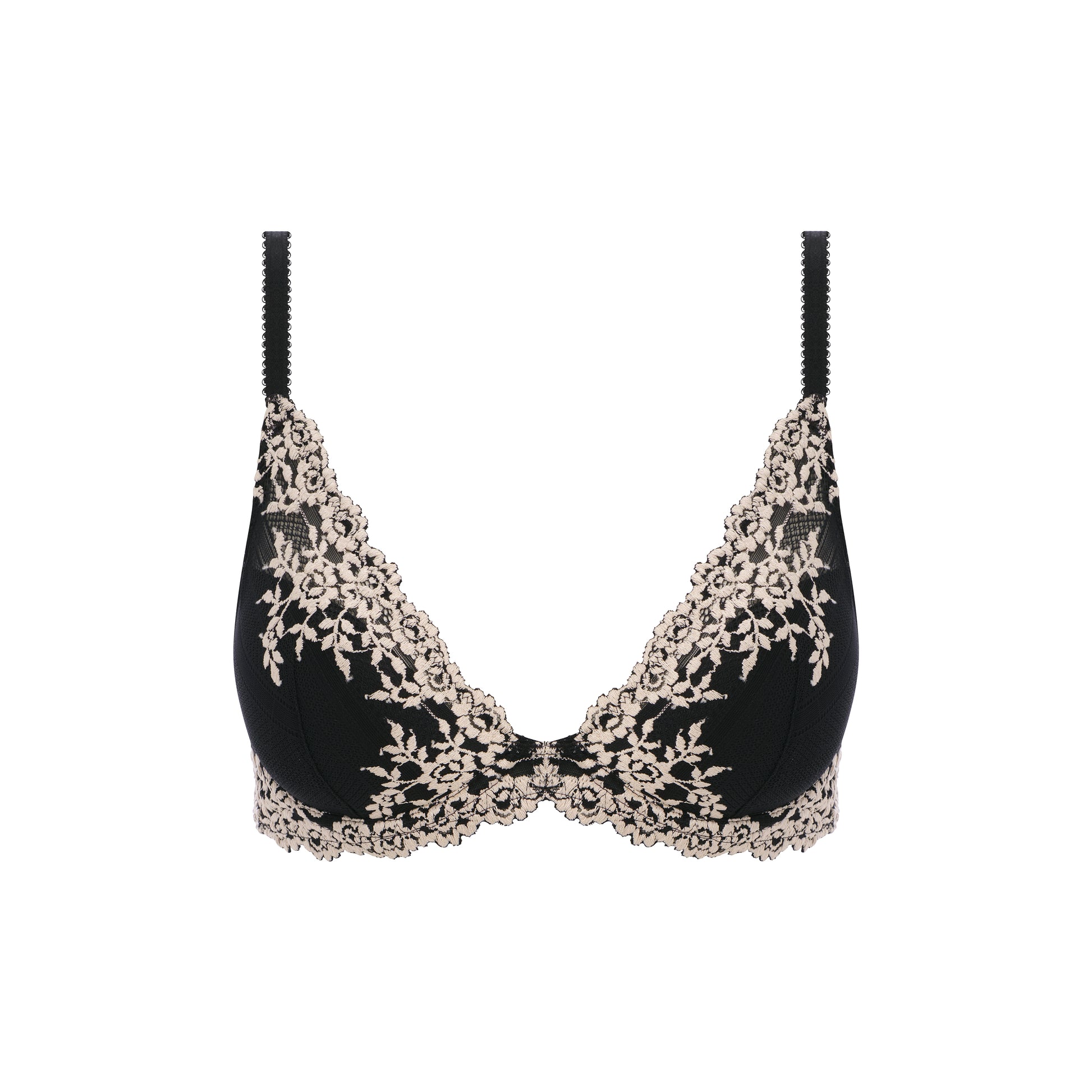 Djupt ringad BH med tunn vaddering och spets